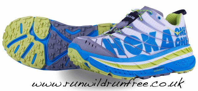 Stinson Evo is designed for absolute racing performance. It is the flagship of the Hoka One One 2012 range. It has a new outsole with EVA lugs to improve on weight. The surface profile has been altered to provide enhanced grip on mud and wet rocks. In addition, this grip provides superior uphill traction. The upper has been optimized to provide a precise racing fit with improved forefoot hold that balances weight and support. It has a quick lace system for rapid adjustment and the new upper has improved breathability. Revisions to the mid sole include a contoured sidewall which help reduce weight and it has a 25mm recessed midsole. The shoe has a 50% rocker profile, 2x2x EVA and recessed foot bucket.